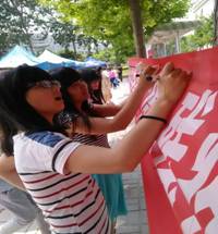 活动分为签名、做游戏和展示海报两部分进行,16张助残献爱心的海报是从全校征集的100余张海报中挑选出来的,“隐形的翅膀”“托起一片天空”的海报呼吁大家献出一片爱心,关注弱势群体。“同学,来签个名吧,然后可以做游戏。”活动负责人张洪亚说,蒙眼夹球和指手画脚的游戏吸引了众多同学前去参与。记者发现一名男生签完名后并没有去做游戏,而是现在海报前仔细的看着,他告诉记者,看到这些海报的内容让他想起了高考完的暑假,他去家乡的一个聋哑学校,那些孩子虽然与人交流上有些障碍,但他们渴望知识的心比正常儿童一点也不差,当他离开时他们那种眼神让他至今想起来都心酸。“所以从那时起我就决定了自己要学特教专业,学好专业知识,以后能为这些弱势群体奉献自己的一份爱心。”初等教育系2014级特殊教育专业吕越说。